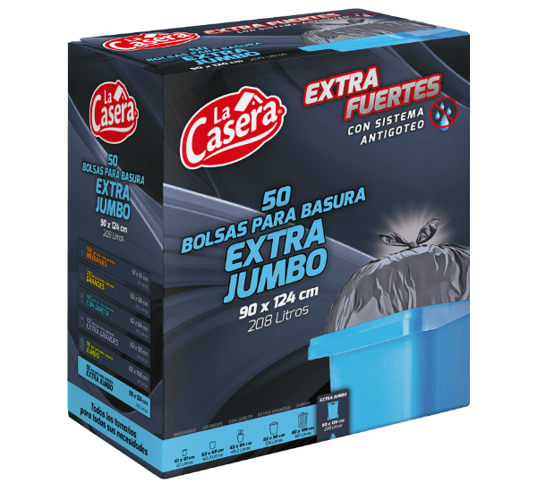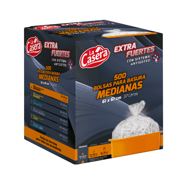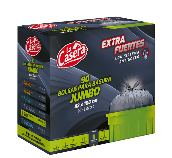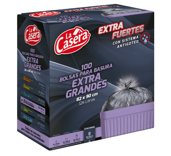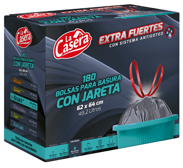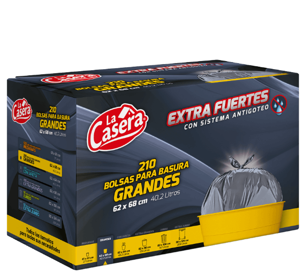 Comodidad, seguridad y calidad en el cierre de las bolsas de basura La Casera. Con solo un gesto, las cintas actúan sellando la parte superior de la bolsa evitando cualquier fuga o escape de los desechos. El material reforzado garantiza una resistencia extra que soporta el peso son roturas ni desgarros.